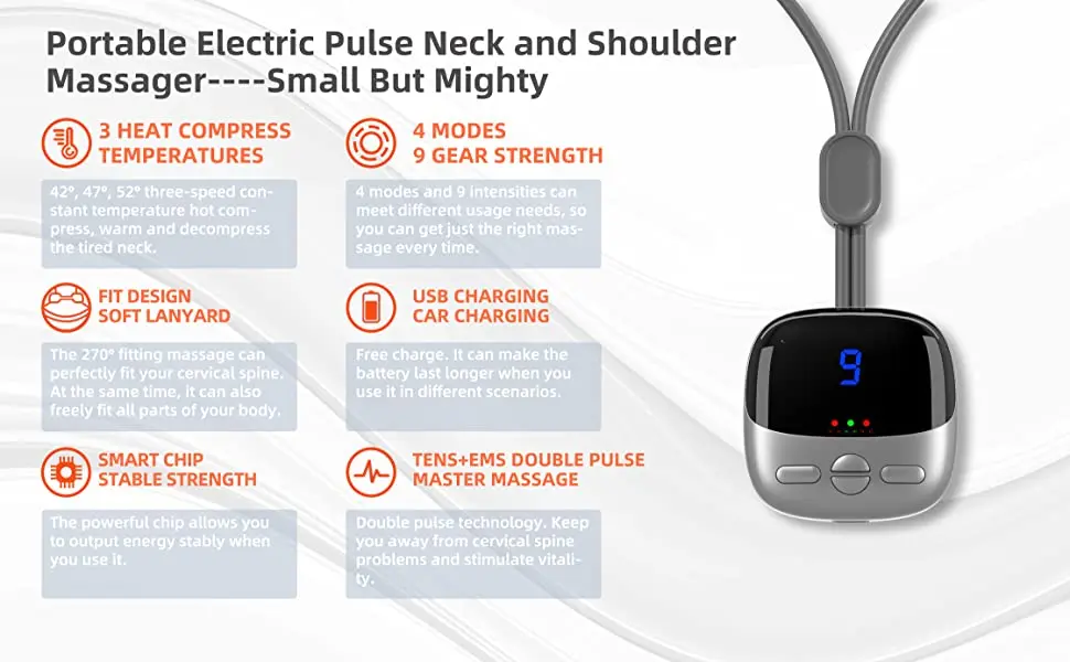 5. Adjustable: Free elastic ring buckle, skin friendly and comfortable massage, the buckle rope can be tightened when in use, so that the massager is more suitable for the cervical . LED screen, clearer.